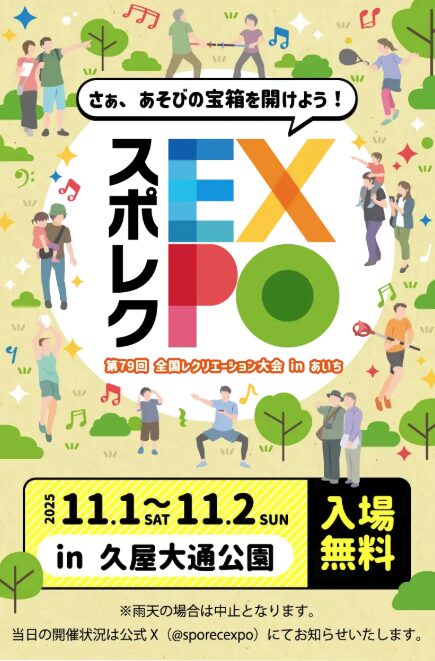 全国のレクリエーション愛好者が集う「第79回全国レクリエーション大会inあいち」が、30年ぶりに愛知県で開催されます。久屋大通公園やモリコロパーク、ウインクあいちをはじめとする県内各地を舞台に、スポレクEXPOやニュースポーツ体験ひろば、交流大会、シンポジウムなど多彩なプログラムを実施。子どもから大人まで、初心者も気軽に参加できる体験型イベントが盛りだくさんです。元オリンピアンの鈴木大地氏を迎えたシンポジウムも開催され、スポーツとレクリエーションの魅力を再発見できる3日間となります。