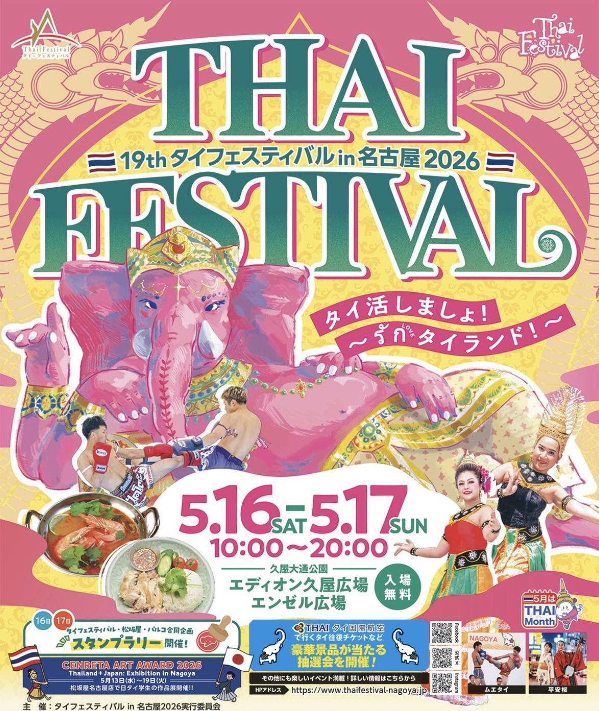 愛知県名古屋市中区の栄・久屋大通公園にて、タイ王国の魅力を存分に体感できる「タイフェスティバル in 名古屋2026」が5月に開催されます。2005年から続くこのイベントは、地域最大級のジャンルとして親しまれ、会場のエディオン久屋広場が本場タイの熱気に包まれる特別な2日間です。